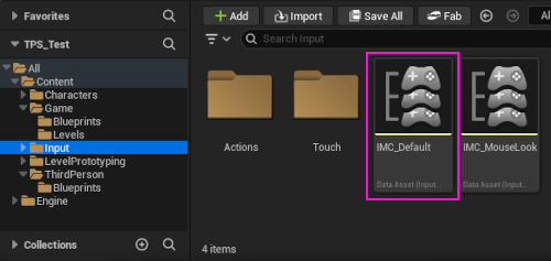 IMC_Default dosyası, projenin giriş (input) ayarlarını yönetmek için kullanılan bir Input Mapping Context'tir.