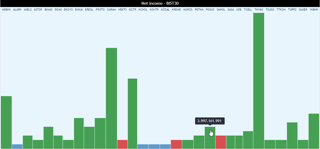 | Grafikte gösterilen veriler hisse adına göre veya değerlere göre küçükten büyüğe veya büyükten küçüğe olacak şekilde sıralanabilir. |