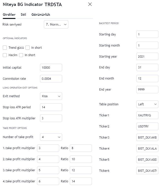 | Stop loss ATR periyodu ve çarpanı değiştirilebilir. |