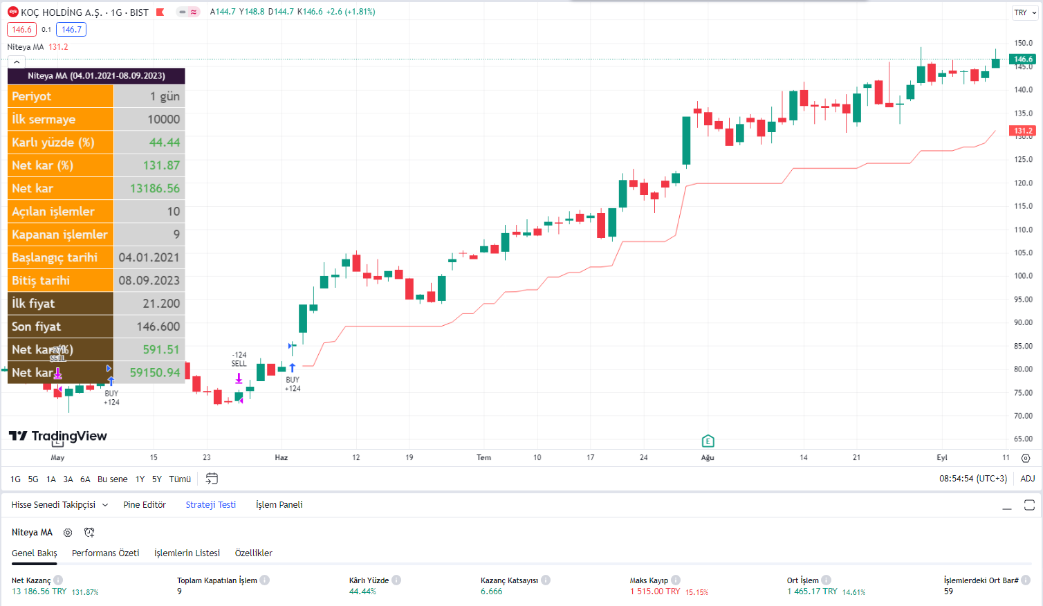 Long ve short işlemlerde kullanılabilecek hareketli ortalama sayısı değiştirildiğinde, karlı yüzde ve net kar yüzde değerleri değişecektir.