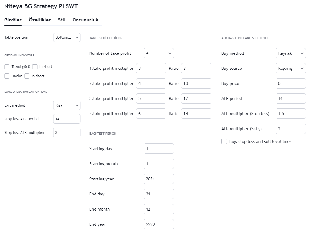 | Stop loss ATR periyodu ve çarpanı değiştirilebilir. |