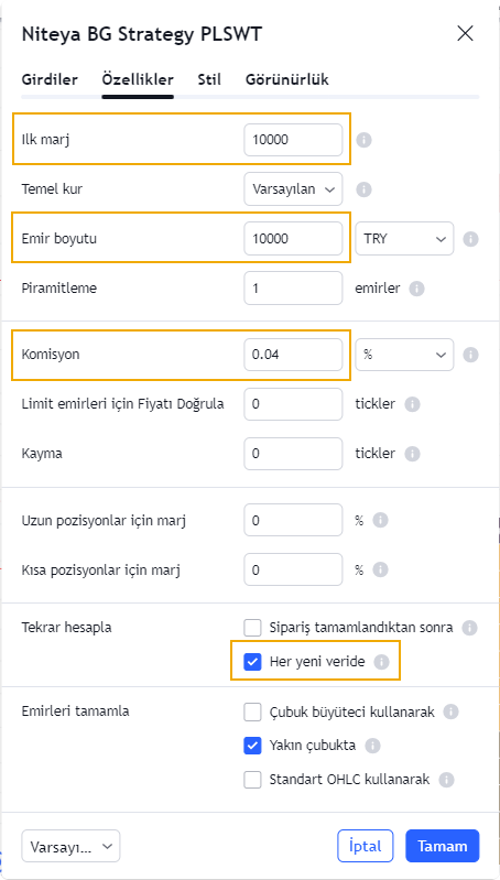 Bu ayarlar, stratejinin "Ayarlar/Özellikler" sekmesinde değiştirilebilir.