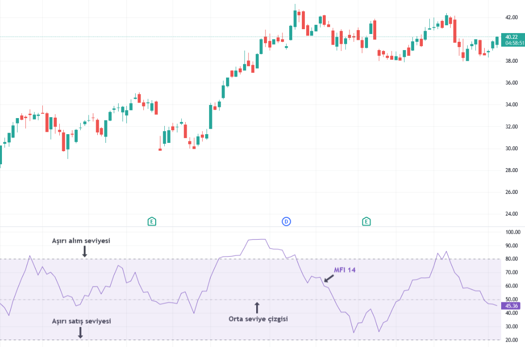 MFI değeri yükselmesi satın almada, düşmesi ise satışlarda artış olduğunu gösterir.