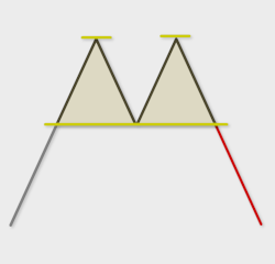 Yaklaşık aynı seviyede iki tepeden oluşur. İlk önce fiyatlar bir tepe yapar. Ardından bir miktar gevşer tekrar daha yüksek bir tepe için hamle yaparak ikinci tepeyi oluşturur. Ancak, alışlar yetersiz kalır ve ikinci tepe ilk tepeyi geçemez. Böylece ilk seviyeyi tekrar test edip aşağı yönlü hareketine başlar.