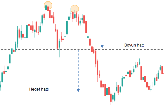 Tepeleri birleştiren destek seviyesi boyun çizgisi olarak isimlendirilir. Bu tepelerin yüksekliğinin birbirine yakınlığı formasyonun doğruluğunu onaylar.