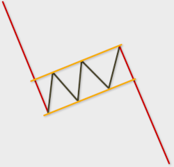 Piyasa, düşen bir trend içinde iken, fiyatlar son düşüşleri düzeltmek amacıyla belirli bir süre çıkış trendine girer. Aşağıda daha yüksek dipler yukarıda ise daha yüksek tepeler yapar. Tepelerdeki yükseliş oranı diplerdeki yükseliş oranı paraleldir. İşlem hacminde azalma görülür. Bu durumda, belirli bir aralıkta salınım yapan fiyat hareketleri, bayrağa benzeyen bir şekil oluşturur.