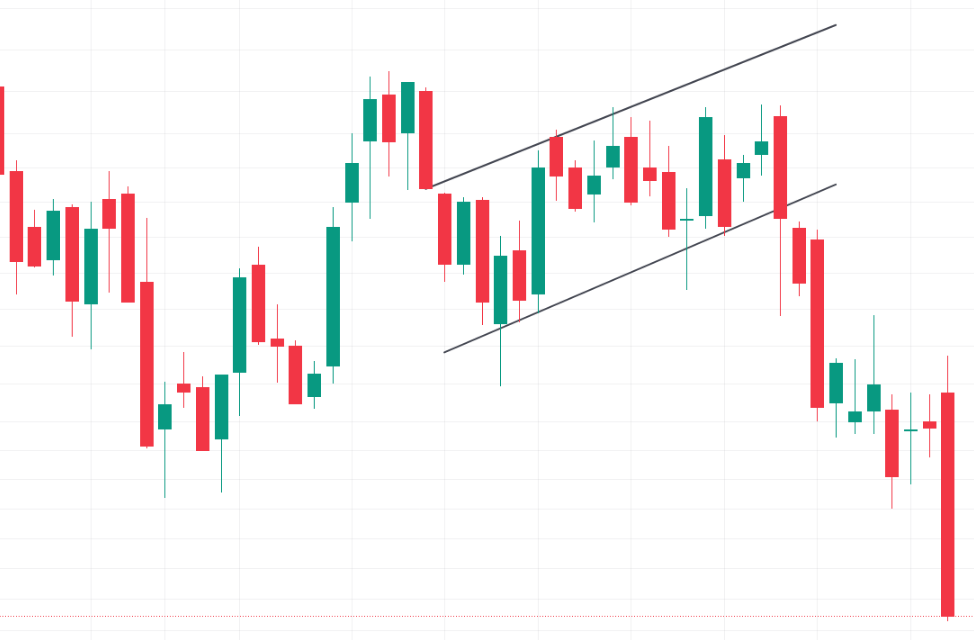 Yükselen bayrak formasyonu düşen bir trendin devam edeceğini gösteren bir trend devam formasyonudur.