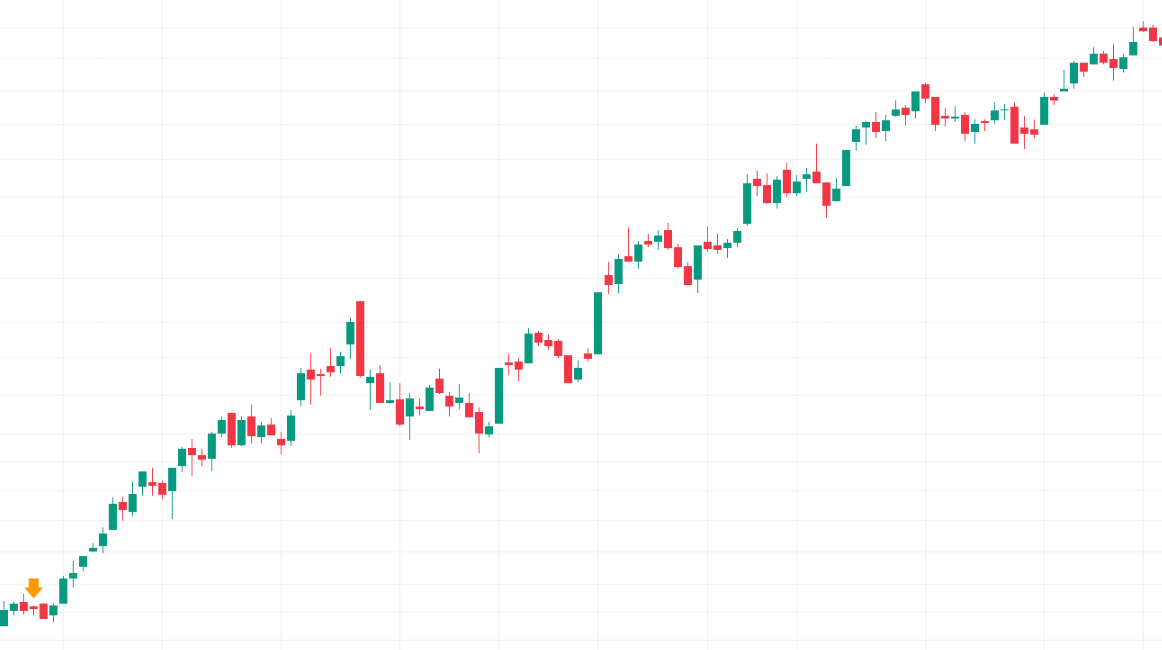 Örnek bir uzun alt gölge mum formasyonu aşağıdaki şekilde gösterilmektedir: