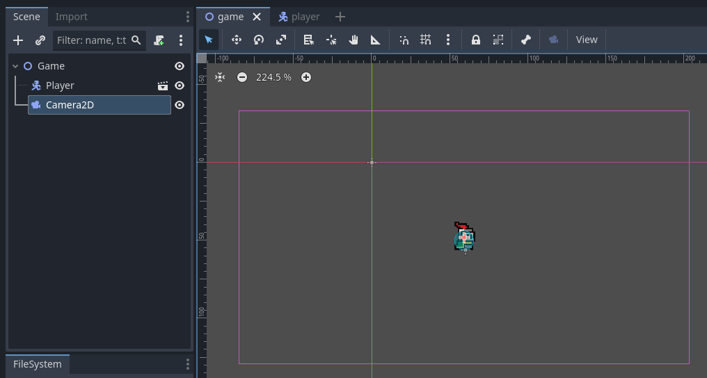3. While the "Camera2D" Node is selected, set the "Zoom" value of the "Inspector" tab to 4.