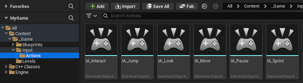 1. "Blueprints" dizini altında "Input" adlı bir dizin ve bu dizin altında "Actions" adlı bir dizin oluşturalım.