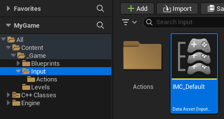 1. "Input" dizini içinde iken, sağ tıkladığımızda açılan menüden, "Input -> Input Mapping Context" seçeneği ile bir Input Mapping Context oluşturup adını "IMC_Default" olarak değiştirelim.
