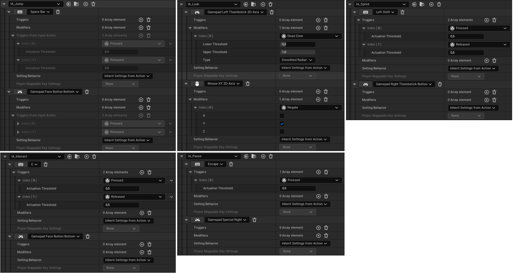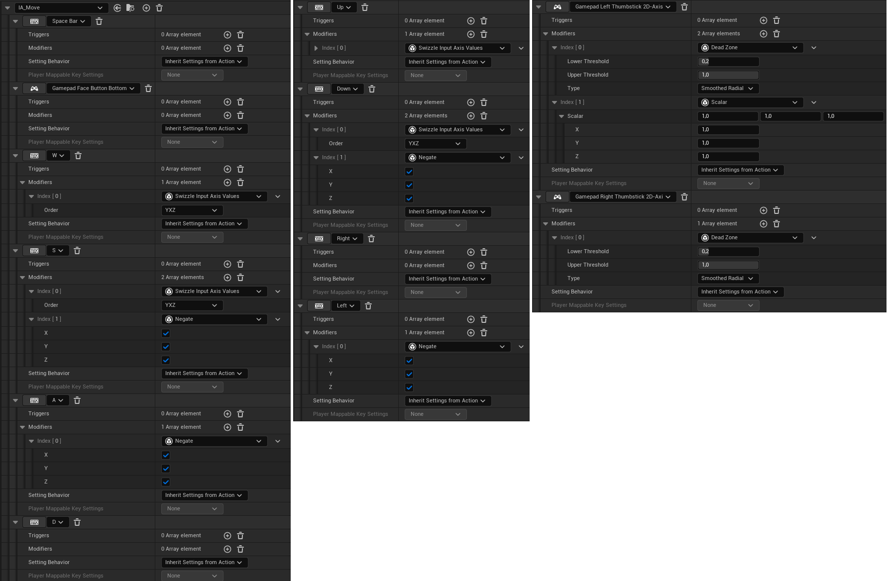 2. Oluşturduğumuz Input Action'ları, IMC_Deafult penceresinde, "Default Key Mappings -> Mappings" altına aşağıda gösterilen değerlerle ekleyelim.