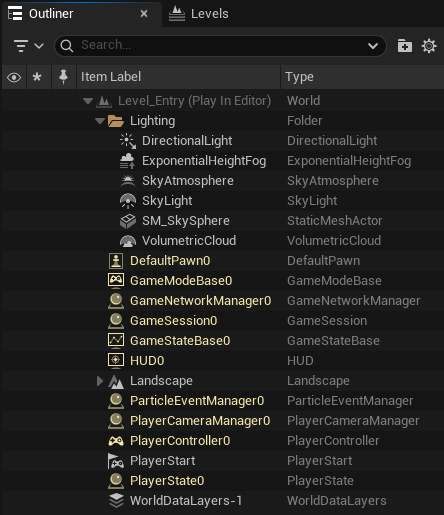 Level'ı Editor'da açtığımızda "Viewport" ve "Outliner" içinde herhangi bir karakter yer almamaktadır. DefaultPawn, Level çalıştıktan sonra Player Controller tarafından oluşturulur.