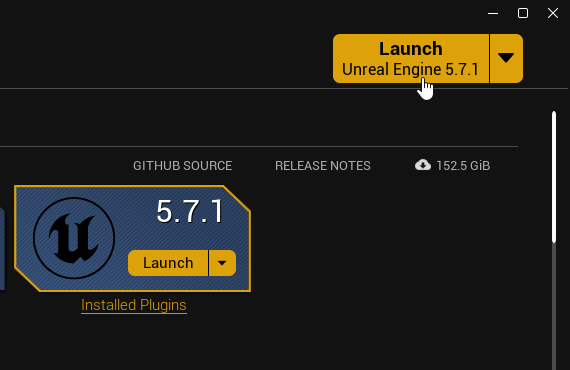 1. Epic Games Launcher'ı çalıştırıp, Launch butonuna tıklayarak, Unreal Engine'i başlatalım.
