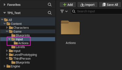 1. "Game" dizini altında "Input" adlı bir dizin ve bu dizin altında "Actions" adlı bir dizin oluşturalım.