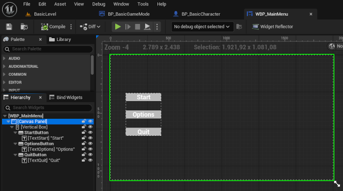 3. WBP_MainMenu üzerine çift tıklayarak açalım.