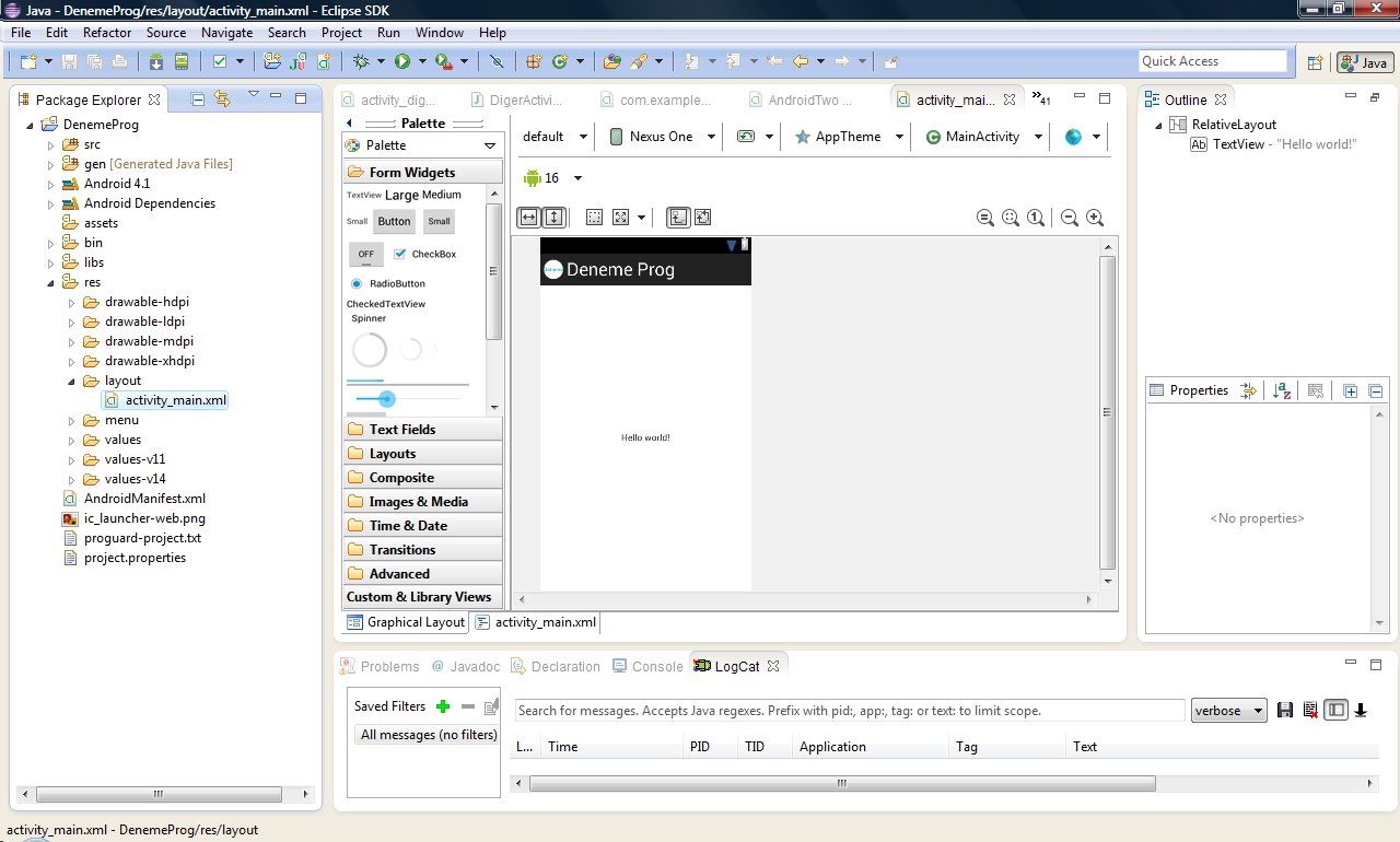 12. Eclipse IDE ortamında sadece sistemin sağladığı özelliklerle oluşturduğumuz ilk Android programını çalıştırarak ekrana Hello world! ifadesini yazdırdık. Bu programda sadece bir tane program penceresi (aktivite) ve bu pencere içinde bir adet TextView elemanı yer almaktadır.
