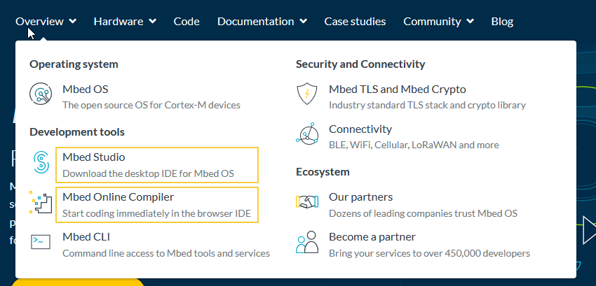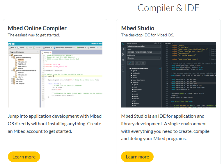 Mbed OS'un online ve entegre geliştirme ortamı olmak üzere iki adet geliştirme ortamı vardır.