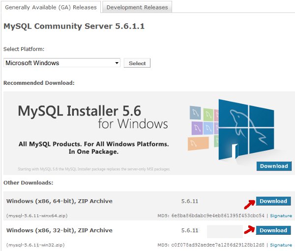 1. Öncelikle, MySQL resmi sitesinden MySQL Community Server'ın zip uzantılı dosyalarından sistemimize uygun olan 32 veya 64 bit sürümlerinden birisini indirelim.