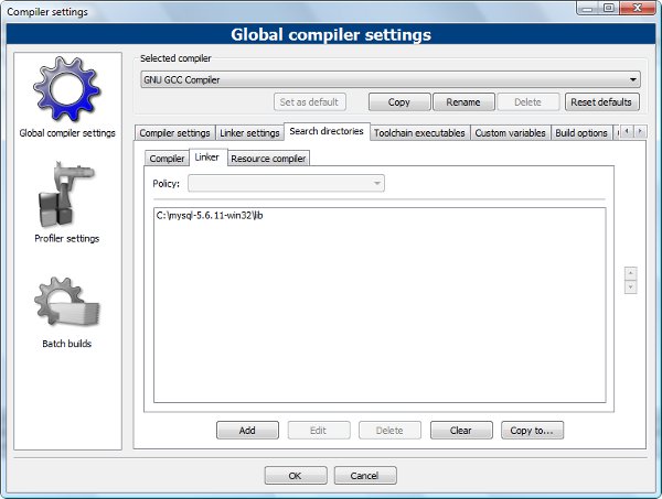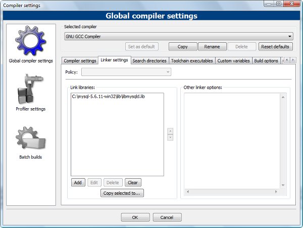 6. Bu durumda, libmysqld.lib dosyası "Link libraries" bölümüne eklenmiş olacaktır.