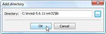 butonuna tıklayarak, bilgisayarımızdaki mysql-5.6.11-win32 dizini altında yer alan lib dizinini ekleyelim ve "OK" butonuna tıklayalım: