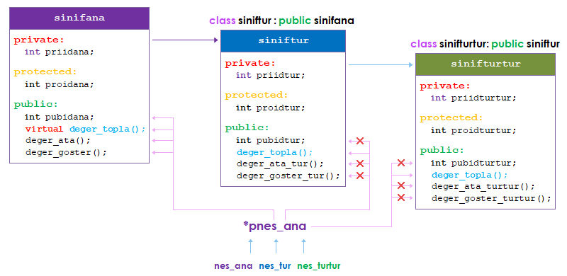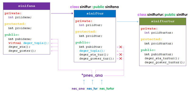 pnes_ana->deger_topla(); // Burada işaretçinin siniftur1 fonksiyonuna erişmesinin nedeni fonksiyonun sanal olarak tanımlanması