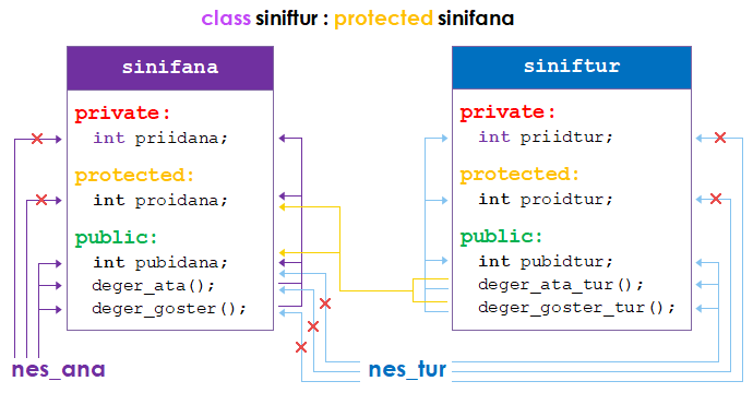 // Bu değişkene sinifana içindeki fonksiyonlar ile sinifana sınıfından türetilmiş sınıf fonksiyonları erişim sağlayabilir.