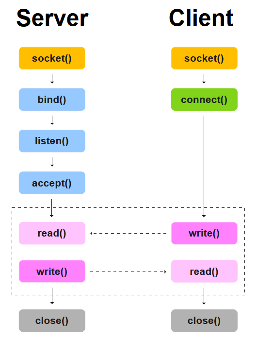 Soketler genellikle sunucu (server) ve istemci (client) modeliyle çalışır. Süreç şu şekilde işler: