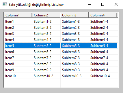 _T("Satır yüksekliği değiştirilmiş Listview"), /* Title Text */