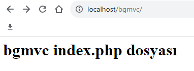 Bir önceki BG MVC kurulum bölümünde yapılan kurulumda ana dizinde bulunan dosyaların tamamı silinirse, web tarayıcı satırına aşağıdaki ifadeyi yazdığımızda:
